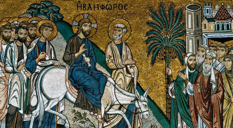 «In quel tempo. La grande folla che era venuta per la festa, udito che Gesù veniva a Gerusalemme, prese dei rami di palme e uscì incontro a lui gridando: "Osanna! Benedetto colui che viene nel nome del Signore, il re d'Israele!." Gesù, trovato un asinello, vi montò sopra, come sta scritto: "Non temere, figlia di Sion! Ecco, il tuo re viene, seduto su un puledro d'asina". I suoi discepoli sul momento non compresero queste cose; ma, quando Gesù fu glorificato, si ricordarono che di lui erano state scritte queste cose e che a lui essi le avevano fatte».