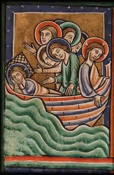 «In quel tempo. Essendo il Signore Gesù salito sulla barca, i suoi discepoli lo seguirono. Ed ecco, avvenne nel mare un grande sconvolgimento, tanto che la barca era coperta dalle onde; ma egli dormiva. Allora si accostarono a lui e lo svegliarono, dicendo: "Salvaci, Signore, siamo perduti!". Ed egli disse loro: "Perché avete paura, gente di poca fede?". Poi si alzò, minacciò i venti e il mare e ci fu grande bonaccia. Tutti, pieni di stupore, dicevano: "Chi è mai costui, che perfino i venti e il mare gli obbediscono?".»